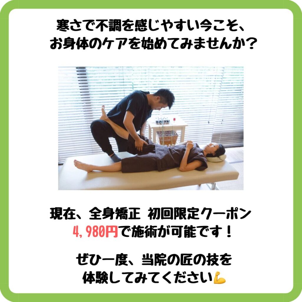 現在、全身矯正 初回限定クーポン 4,980円で施術が可能です!